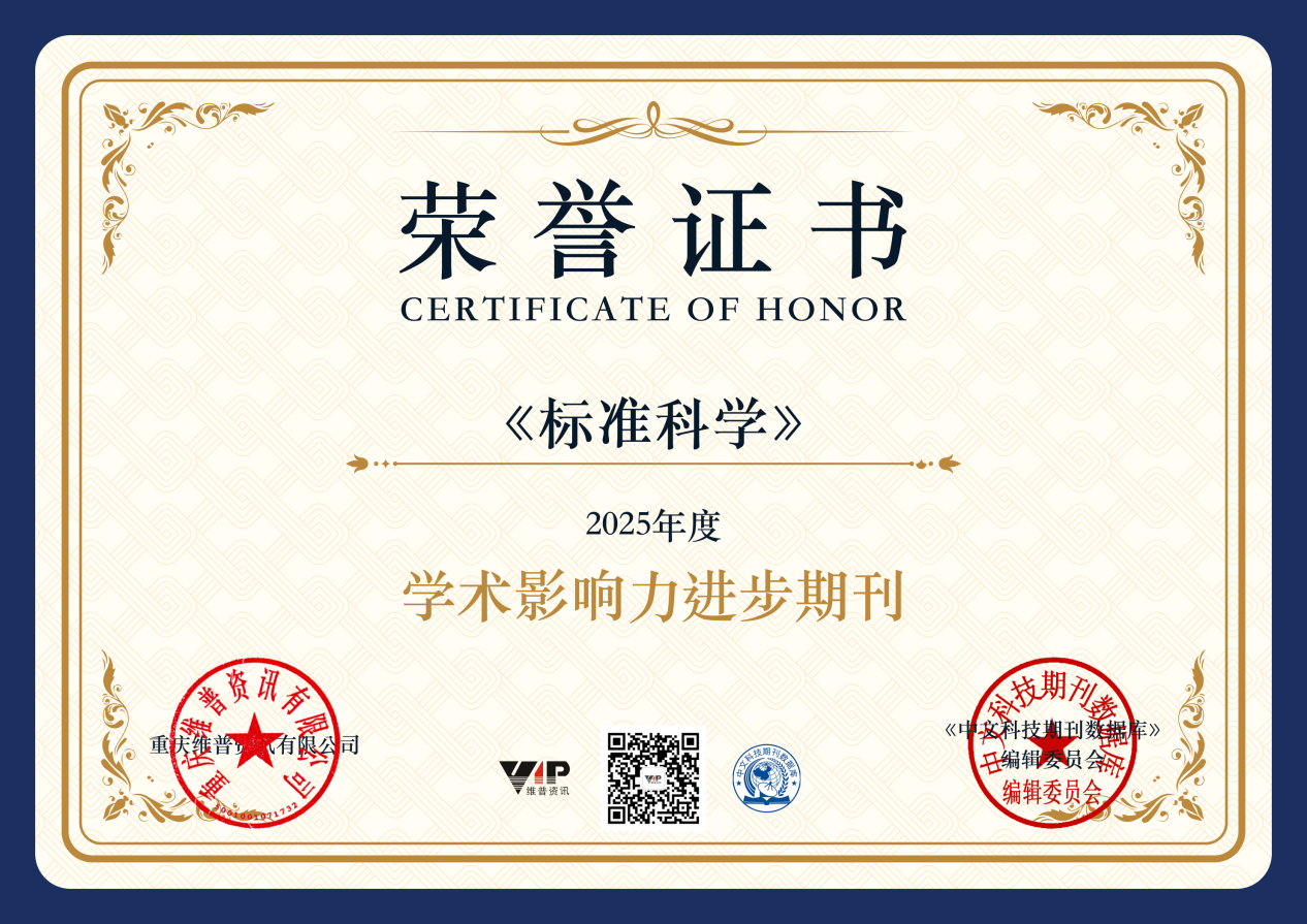 近日,在2025年度维普资讯期刊评选中,由国家市场监督管理总局主管、中国标准化研究院与中国标准化协会共同主办,《中国标准化》杂志社出版的科技期刊《标准科学》,凭借持续提升的学术质量与行业影响力,荣获“学术影响力进步期刊”荣誉称号。该奖项是对期刊六十余年发展成果与学术价值的权威认可。